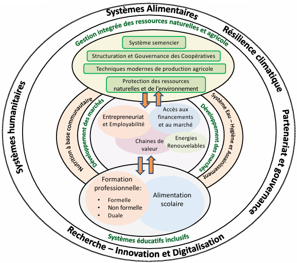 WHH met également l’accent sur la nutrition et le capital humain, avec la promotion de la nutrition communautaire et de l’alimentation scolaire, l’Eau–Hygiène et Assainissement pour garantir l’accès à une eau potable sûre, à des installations sanitaires adéquates et à des pratiques d’hygiène appropriées, ainsi que la formation et l’insertion professionnelle pour renforcer les compétences et l’employabilité des jeunes. Ces interventions sont renforcées par des axes transversaux incluant la résilience climatique, le partenariat et le plaidoyer, la recherche, l’innovation et la digitalisation, ainsi que le lien entre urgence, développement et paix pour assurer une transition cohérente entre l’aide humanitaire et le développement durable.